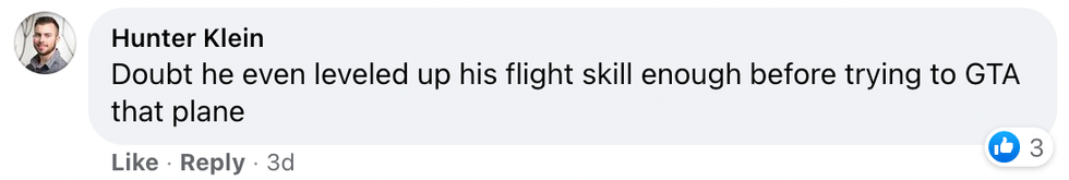 "We've all been at the point where we needed a vacation, but this took it a little far… note to self… video games are not real… stealing a jet will not go well."