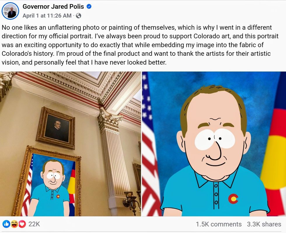 Unfortunately, because that portrait is perfection, one merry prankster who took part in the festivities was Governor Polis.