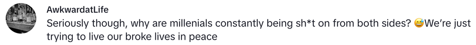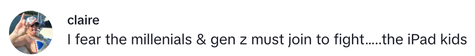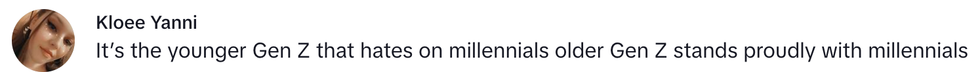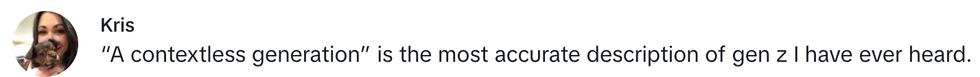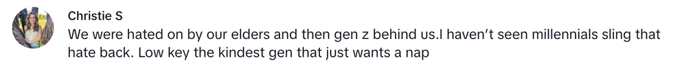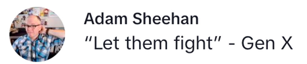 Shlesinger encouraged the generations to stop bickering and to team up, instead. Both are struggling in a difficult world. And, she pointed out, the only reason the two generations are even fighting at all is because they are the only ones in the TikTok comments anyway, bar a few lurking Gen X-ers.