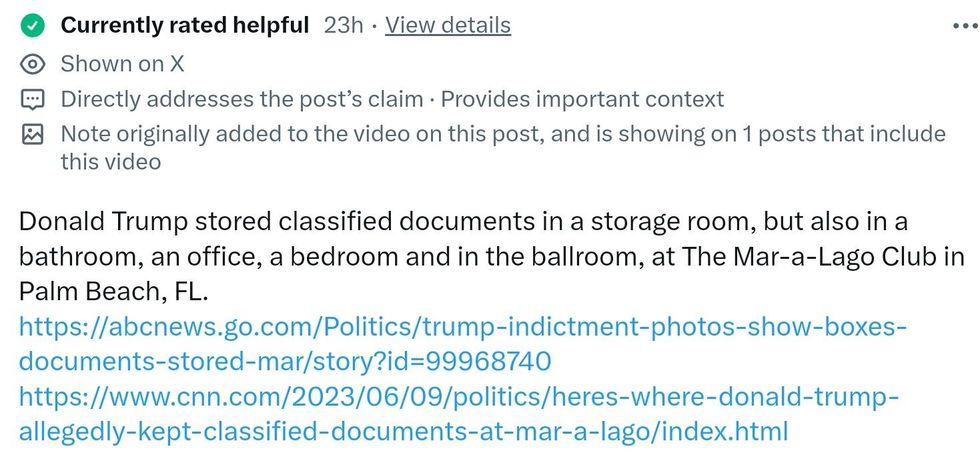 The X community also tagged the video of Comer's false claim with the sourced context: