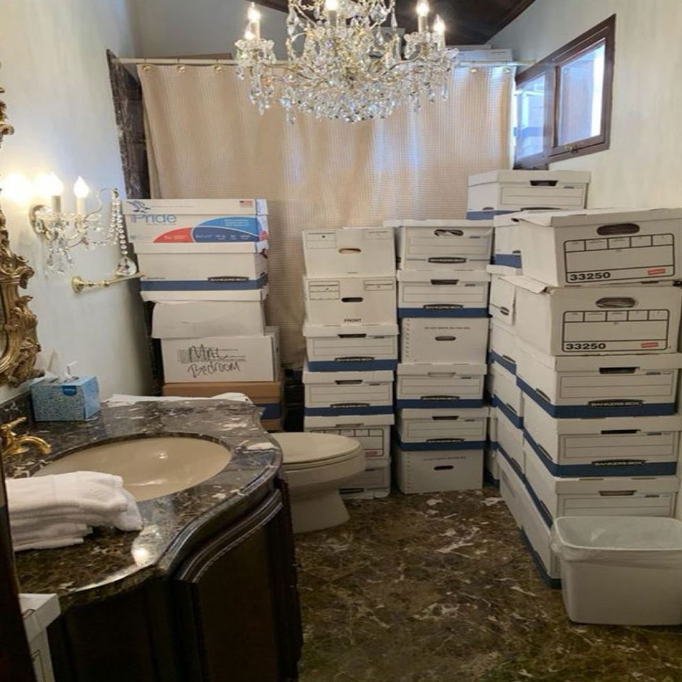 "Donald Trump stored classified documents in a storage room, but also in a bathroom, an office, a bedroom and in the ballroom, at The Mar-a-Lago Club in Palm Beach, FL."