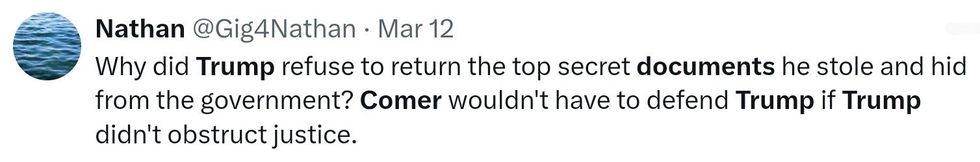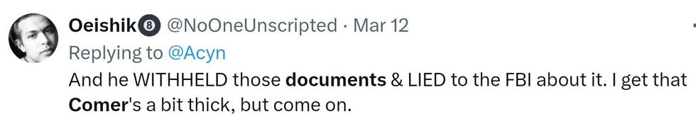 Comer—a MAGA faithful—got plenty of public feedback for his latest whataboutism defense of Trump.