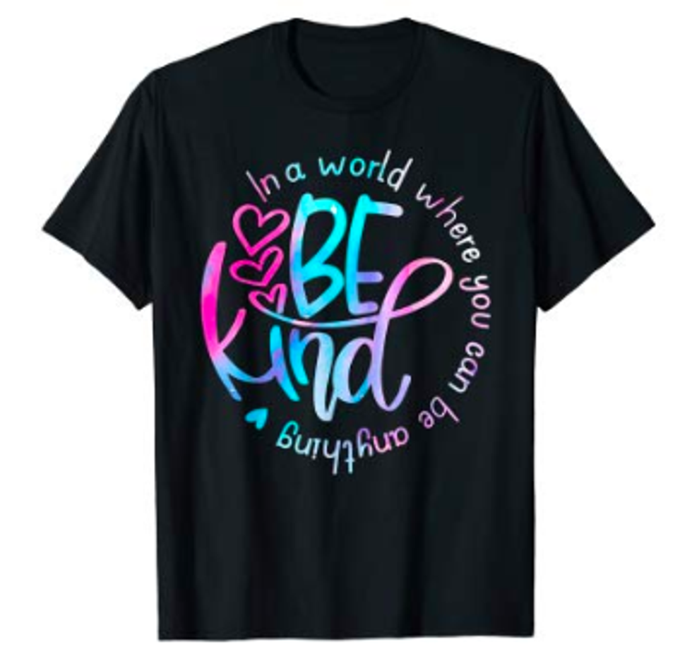 Declare your intentions in this shirt promoting kindness available here in a variety of colors and in men's, women's and children's sizes.