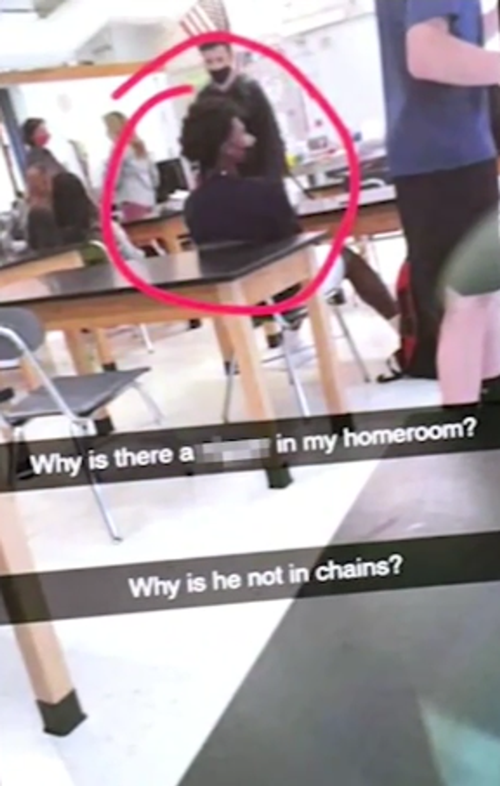 The post was a picture taken inside of a classroom, with Jamar Medor, who is Black, circled in red.