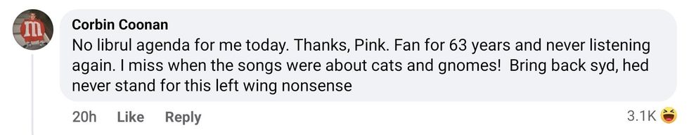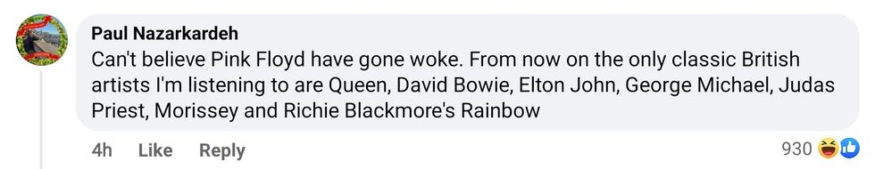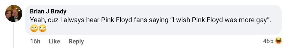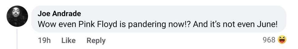 Many whose public profiles' homophobia matched their comments found themselves in a minority of public opinions on Pink Floyd's post.