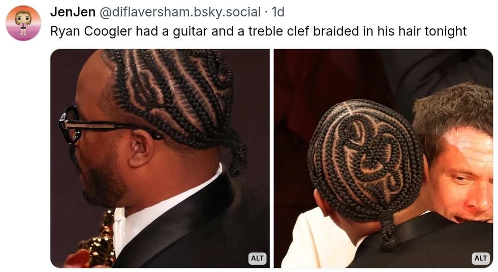 Eagle-eyed viewers noted Coogler's braiding artist, Berkeley, California-based Tyzanna B, added a tribute to Sinners in his hair.