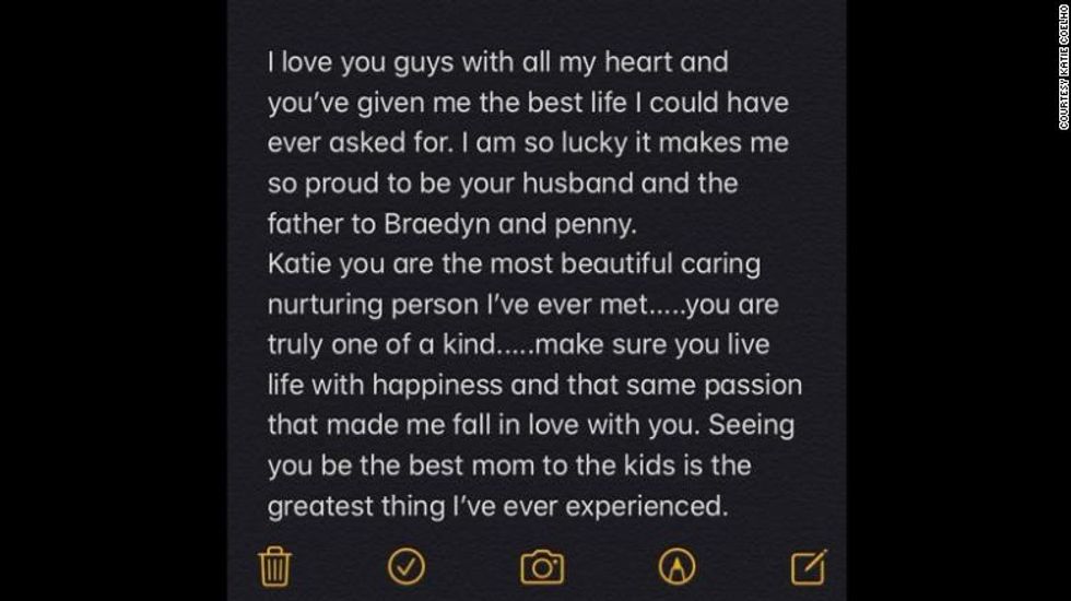"I am so lucky it makes me so proud to be your husband and the father to Braedyn and Penny. Katie you are the most beautiful caring nurturing person I've ever met."