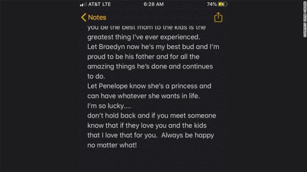 "I don't know why I put my phone on vibrate that night, but I did. And I slept through a 4 a.m. phone call from him that said his breathing got a little weird in the night, so they said they're gonna have to let his body rest so he could come home to me and the kids, and that he loved us."