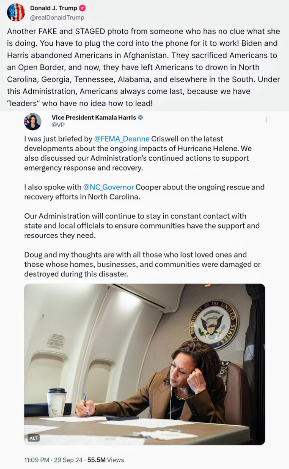 Meanwhile, President Biden and Trump's 2024 presidential opponent, VP Harris, opted to not overburden law enforcement, local government, nor interfere with recovery efforts just to set up a photo op and press conference.