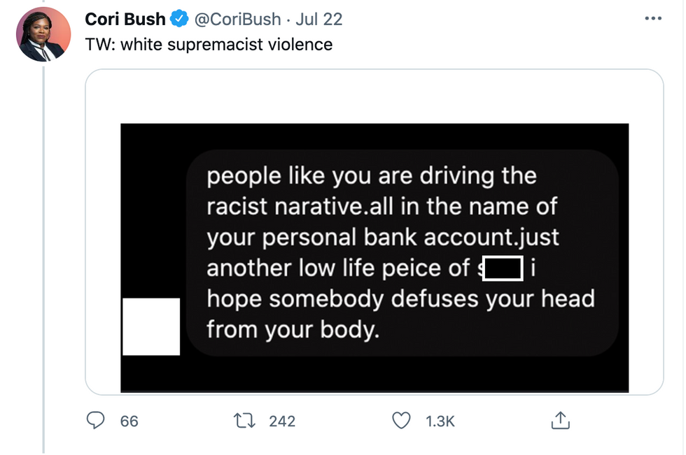 Many of Bush's twitter trolls were specifically attacking her for her progressive views on police reform.