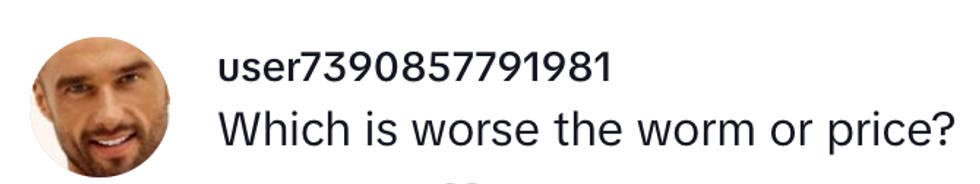 Others were more shocked by the price of the salmon, visible near the worm.