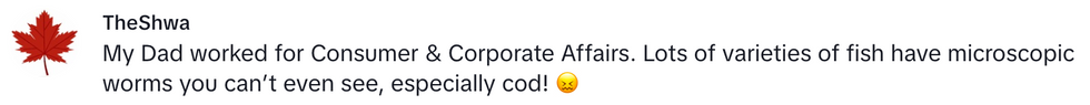 Some people flinched and said 'Ew,' but the majority of comments on her video were people talking about how common parasites are in fish.