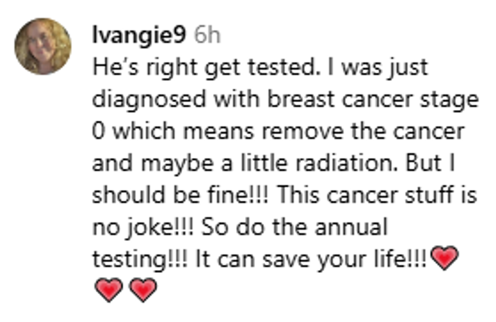 "So I hope you’re getting your check-ups. I hope your colonoscopies, breast exams, and prostate exams. They will save your life."