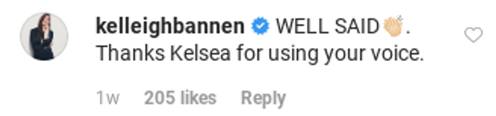 Fellow top female country artist, Kelsea Ballerini, continued the conversation, this time over on Instagram.