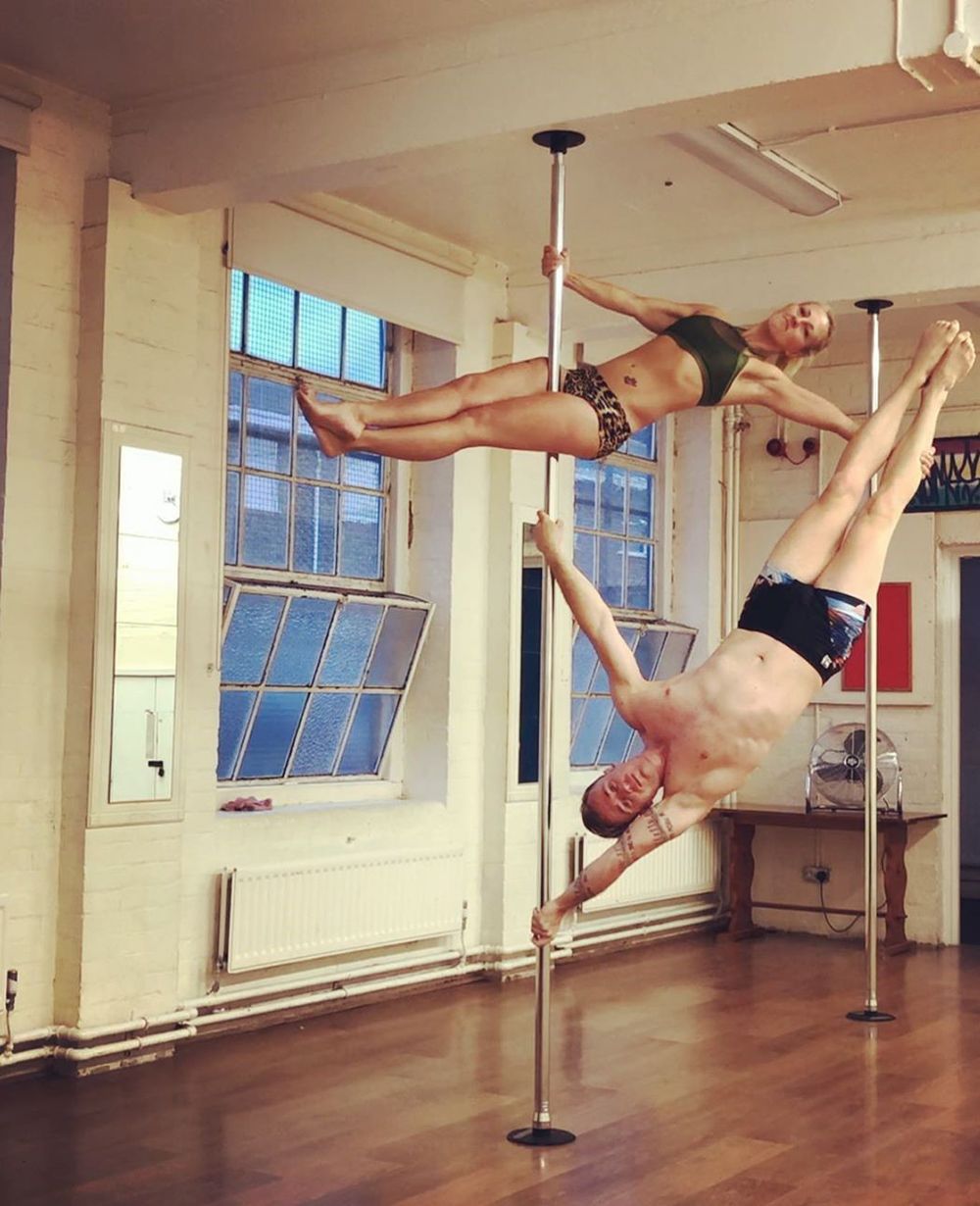 But with gyms and fitness studios now closed to combat the spread of the virus, they have installed a pole at home to practice on.