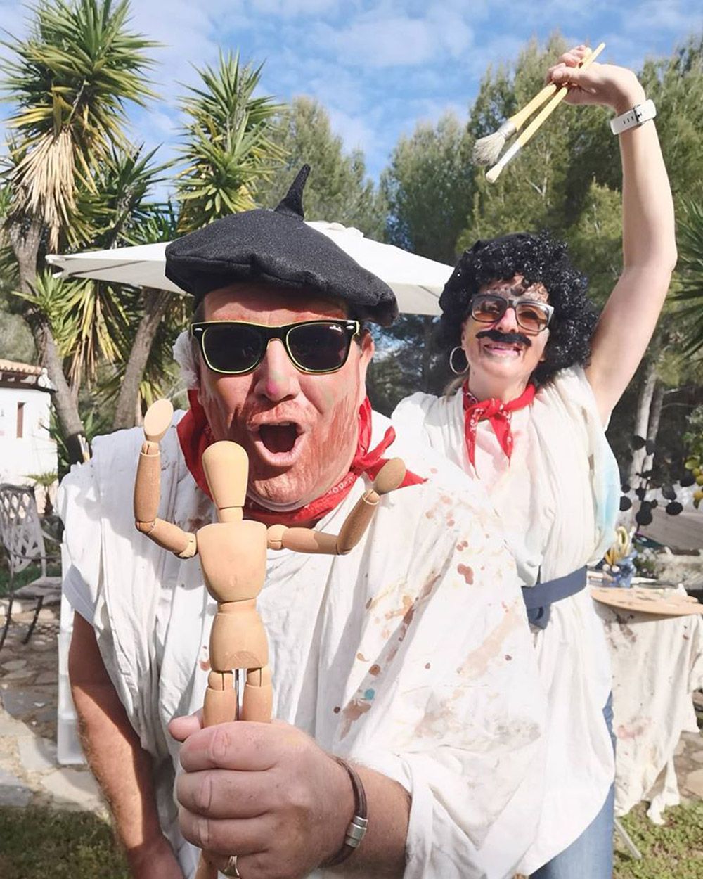 A British couple on lockdown in Spain have become masters of disguise by donning a different fancy dress costume for every day of quarantine – aping everyone from chimney sweeps to disco divas.