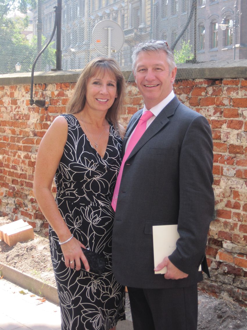 “We found out we got married in the same church – me in 1988 and John in 1983. We both had the same photograph taken in the same place outside the church, which is very strange.