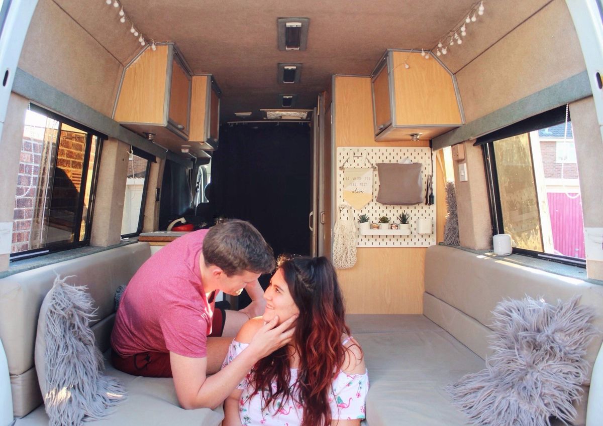 A young couple who met by chance when he accidentally sent her Snapchat selfie have revealed how they quit their jobs and sold their possessions to live in a souped-up van.