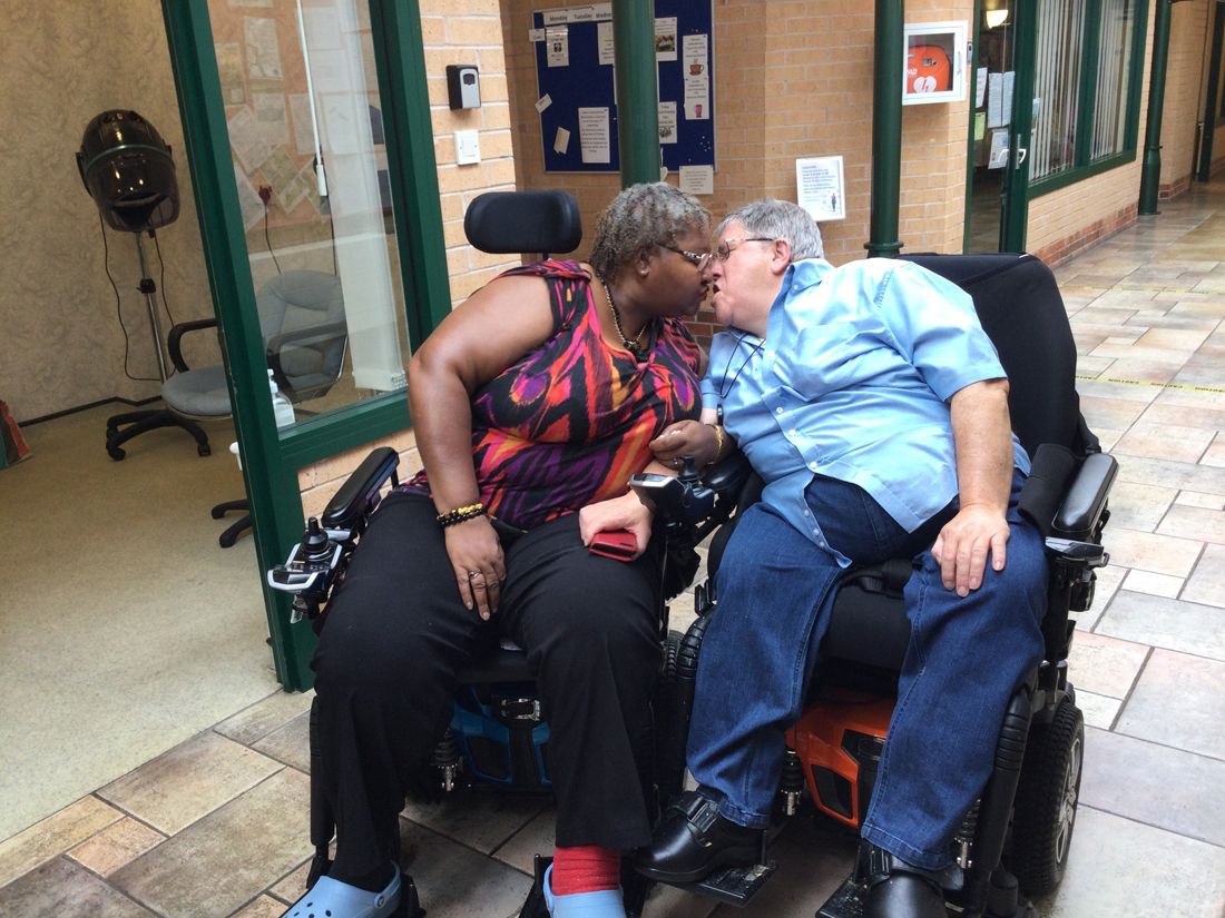 Both disabled, Trisha Green, 61, had been resident at Seagrave Court, an independent living facility in Strelley, Nottinghamshire, England, for a few months when she met former engineer Derek Icke, 67, and blew him away with a demonstration of her custom made mobility scooter.