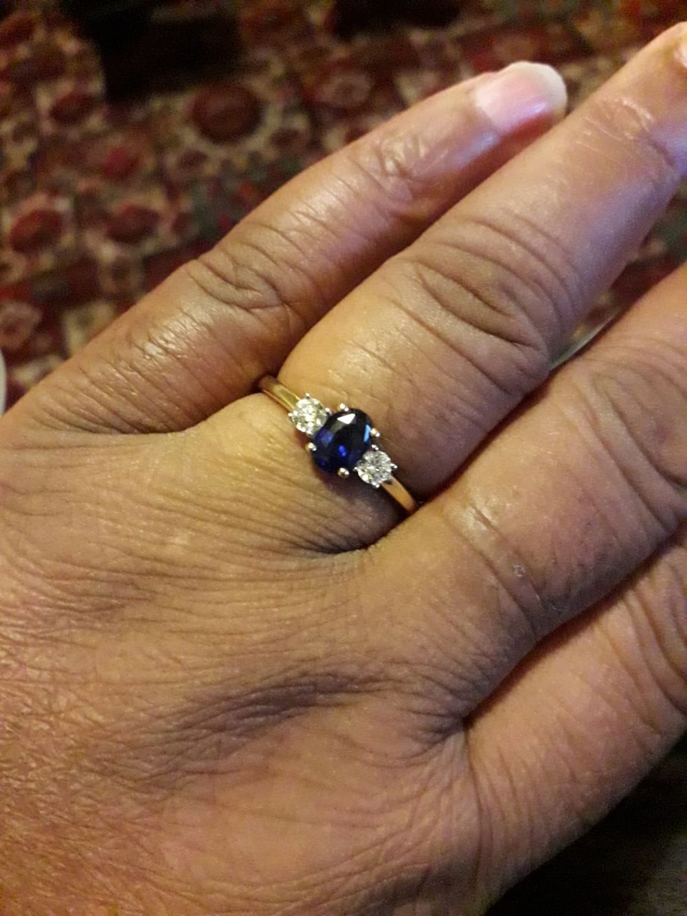 “We went shopping so I could get my ring size, but while I was in there I saw this gorgeous blue sapphire wedding ring."