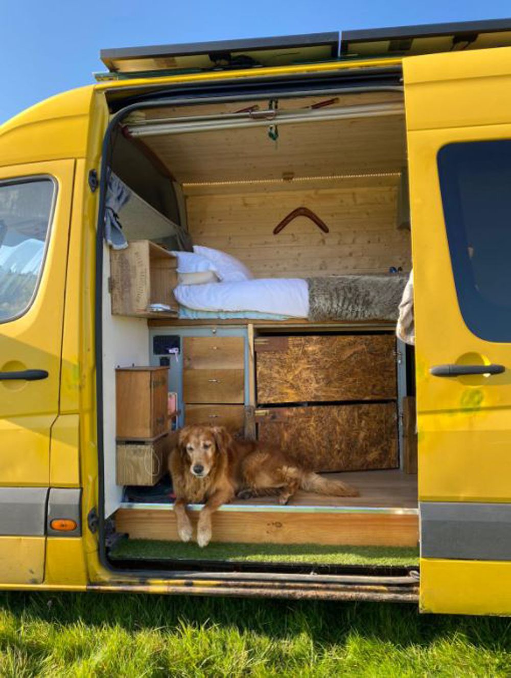 So, two days after landing in England, the couple found their future home on the website Gumtree – a second-hand yellow Mercedes MWB Sprinter.