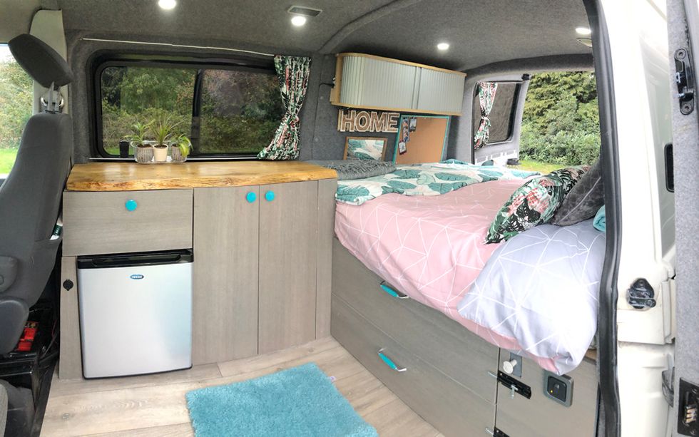 Doing everything themselves, the pair fitted the vehicle with a double bed, a kitchenette, fridge, and several cupboards for storage.