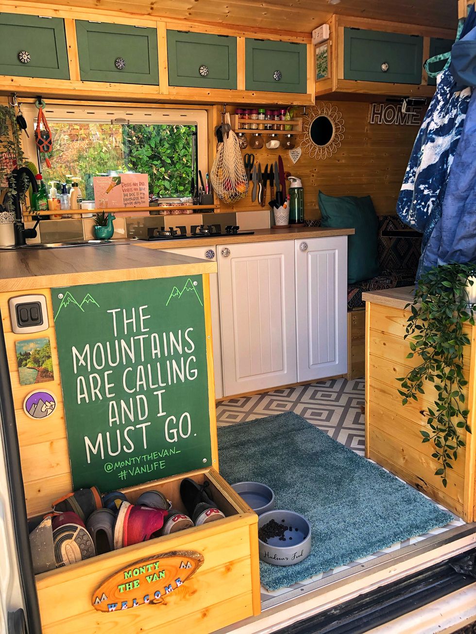 In September 2019 they spent $3,100 on a Vauxhall Movano, which they named Monty and transformed in just four weeks. Fitting a wooden seating area that flattened to become a double bed, a kitchenette complete with a stove and fridge and a sink, shower and toilet.