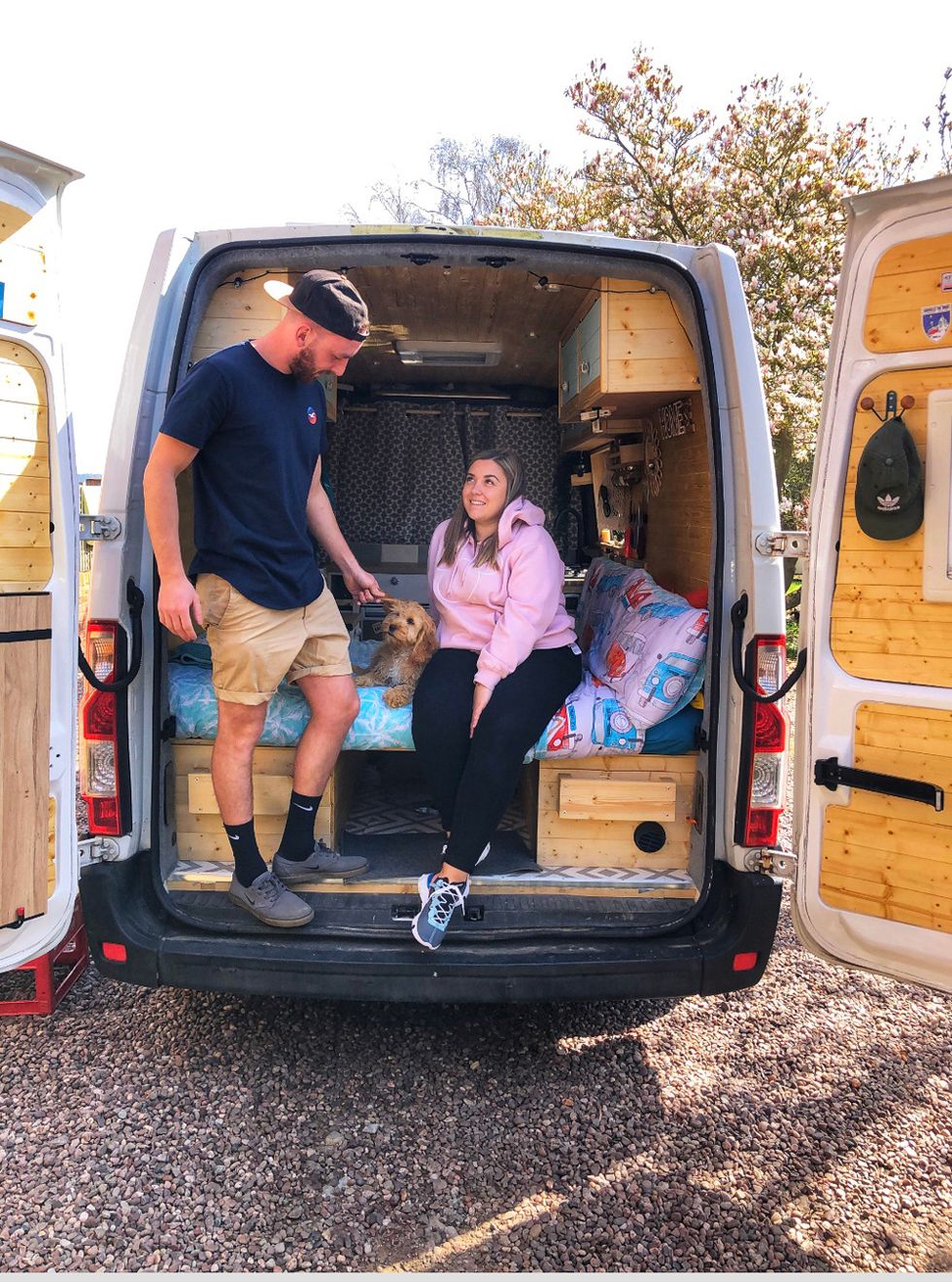 In March, the pair even got a puppy, Hudson, to join them on the road and were planning to set off in April.