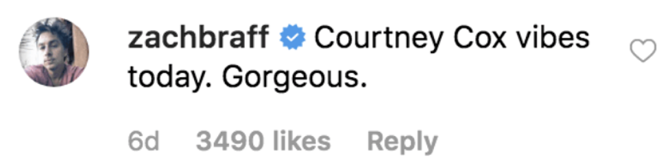Below the photo, Zach Braff, who co-starred with Courteney Cox in a season of Scrubs, commented: