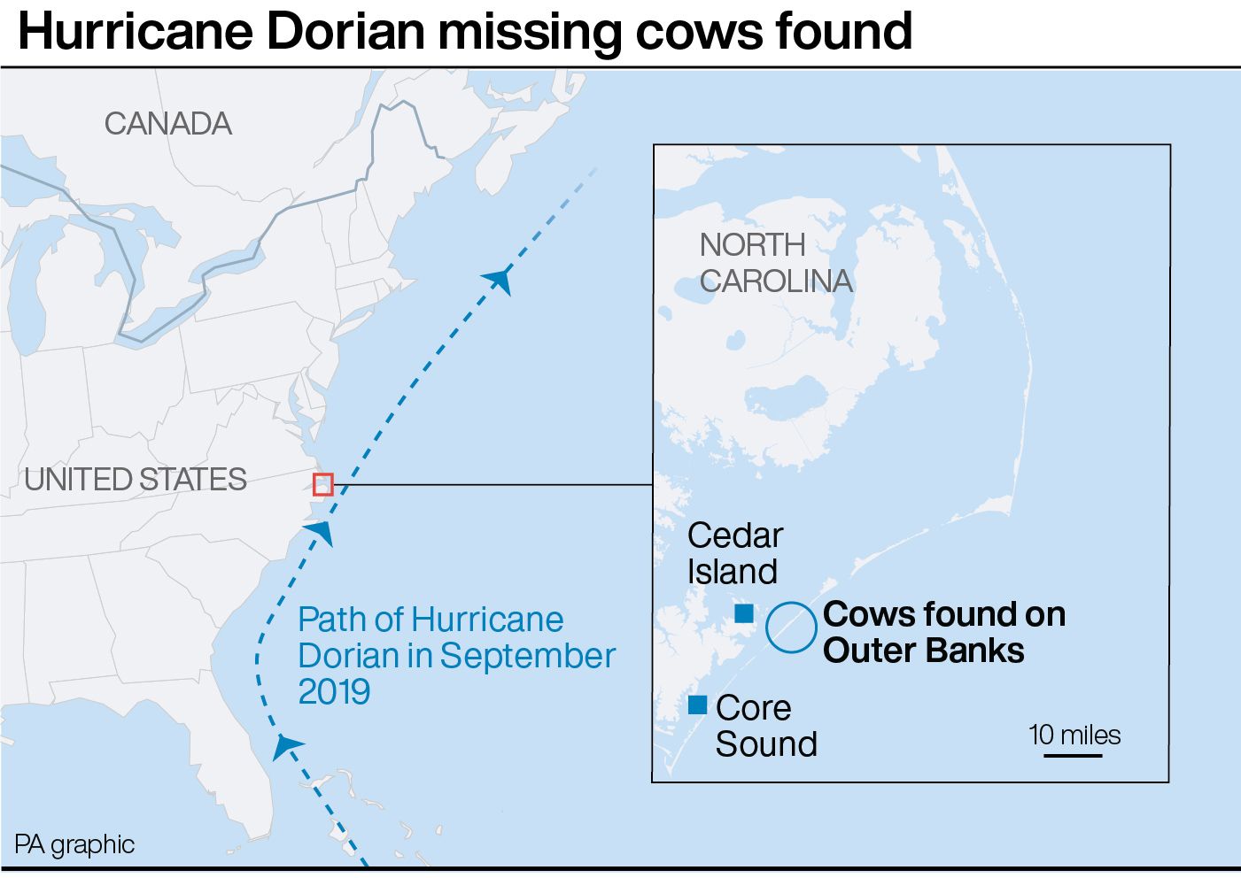 Three cows presumed dead after being swept out to sea by Hurricane Dorian have been found on North Carolina's Outer Banks having apparently swum several miles to safety.