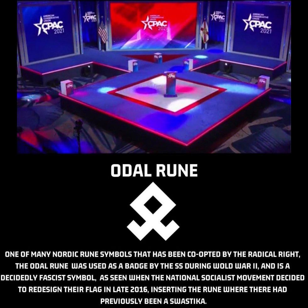 On Saturday, February 27, many people on Twitter noticed that the stage at this year's Conservative Political Action Conference (CPAC) was shaped exactly like a well-known Nazi symbol.