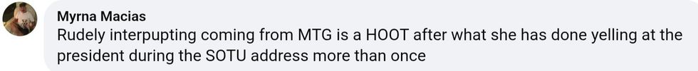 In response, MTG—without a hint of self-awareness—told her interrupting was rude.