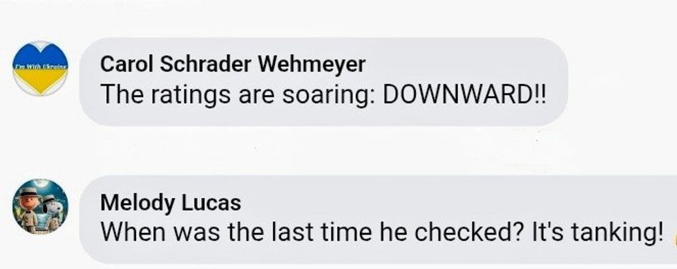 MAGA minions on X also claimed Burchett was correct and brought their own receipts for Trump's soaring poll numbers, citing a Newsmax screenshot hailing a 56% approval rating from Rasmussen Reports.