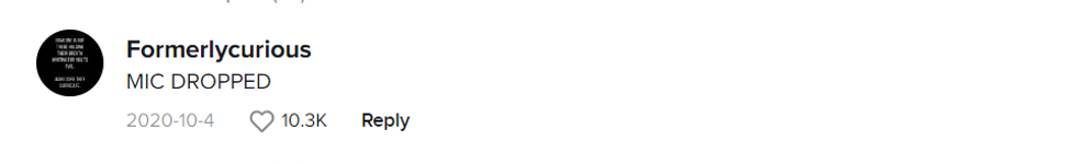 Fellow TikTokers were left slow-clapping for McCue's deft reply to the sexism in the video.