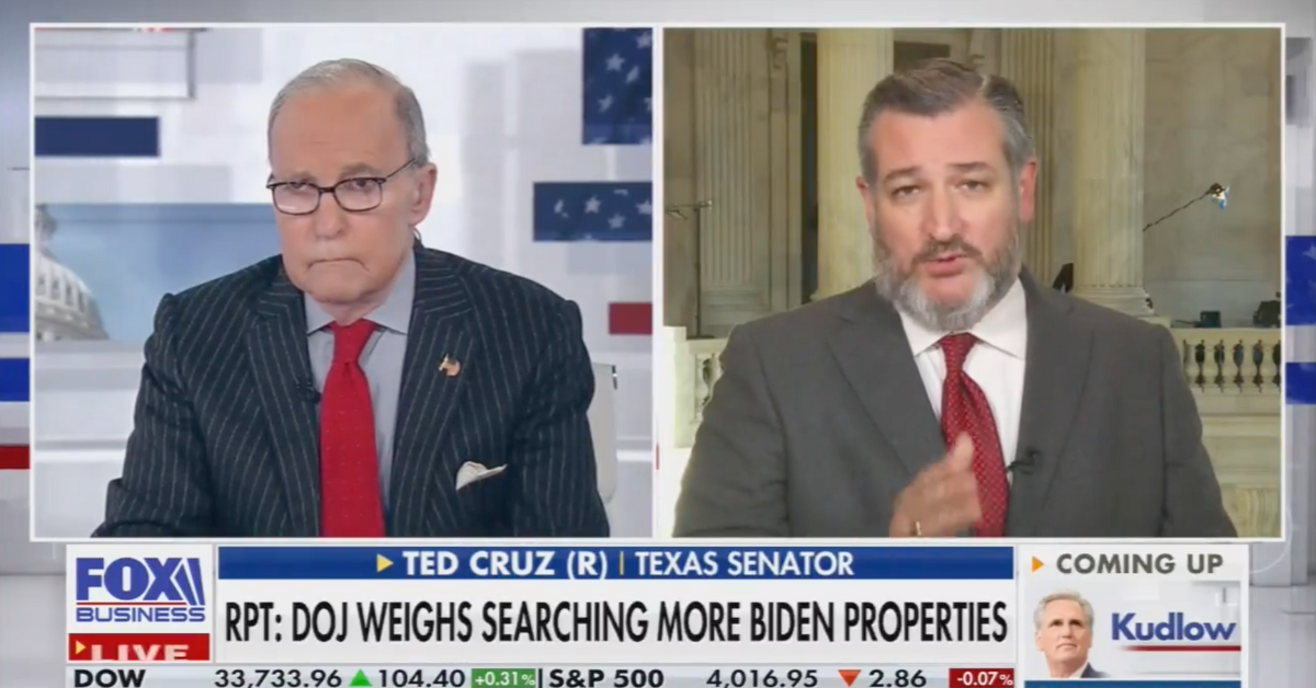 After Fox Business host Larry Kudlow asked Cruz to comment on the investigation into Pence and whether he sees any difference between Pence and Biden, Cruz flip flopped: