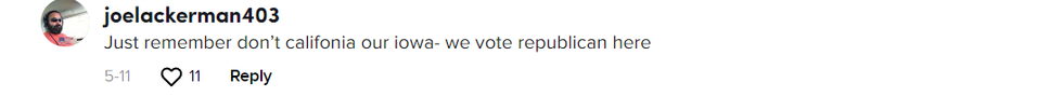 TikTok user Katie Bishop has people cracking up thanks to her video highlighting how "crazy different" life in Iowa is from life in California.