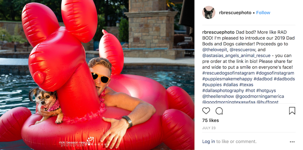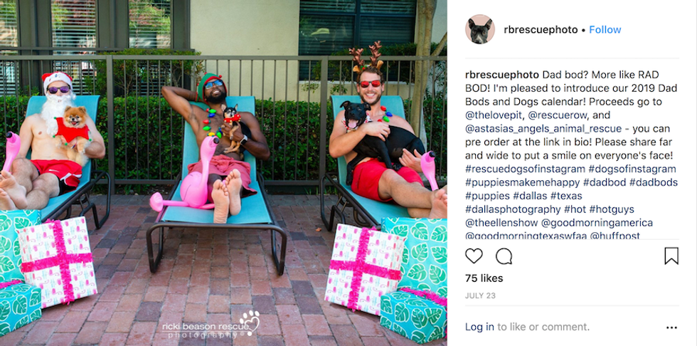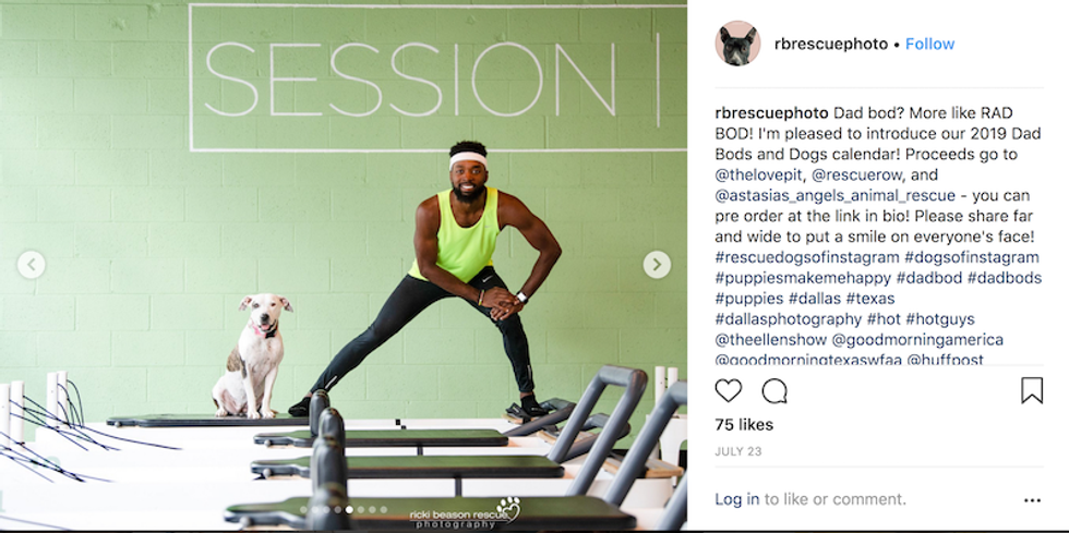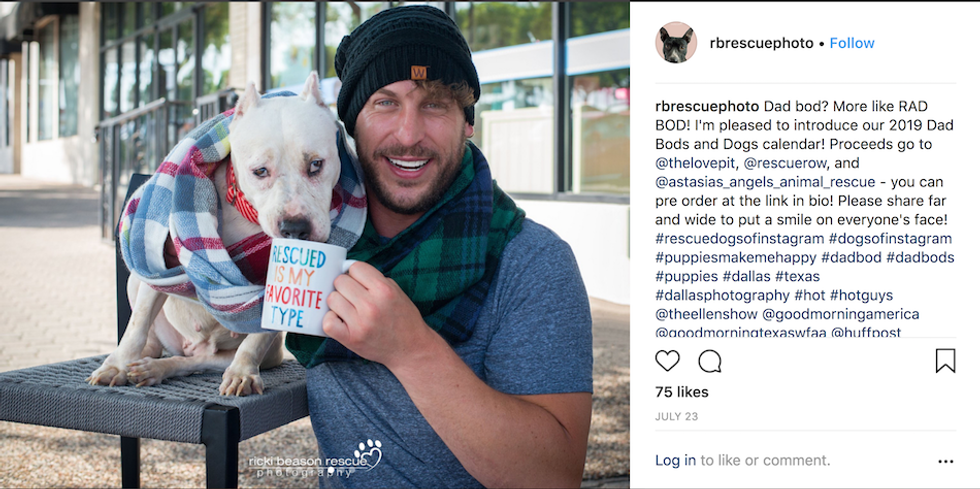 The theme for her calendar is called "Dad Bods and Dogs," and it's a collaboration with Dallas area animal shelters, including, The Love Pit, Rescue Row, and Astasia's Angels Animal Rescue.