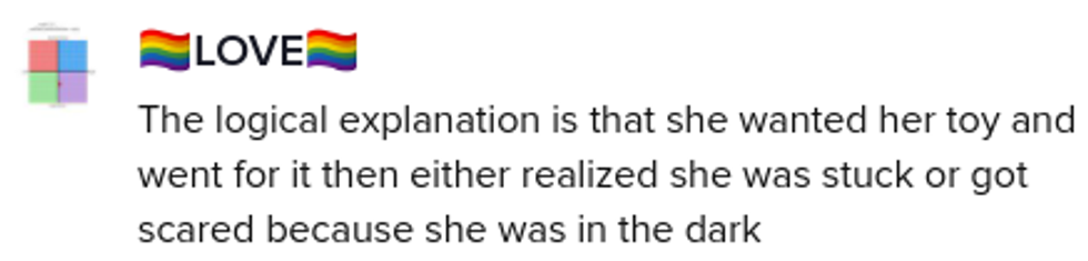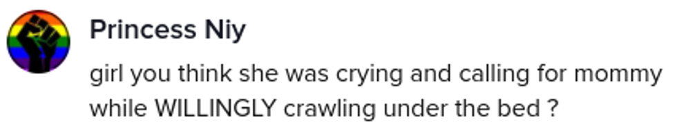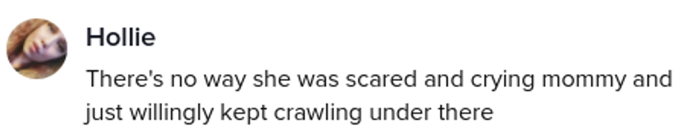 It was then that the supposed supernatural dynamics took hold. The toddler could be seen quickly sliding her way under the bed, calling out "Mommy!" repeatedly in a tone that seemed to suggest surprise and powerlessness.