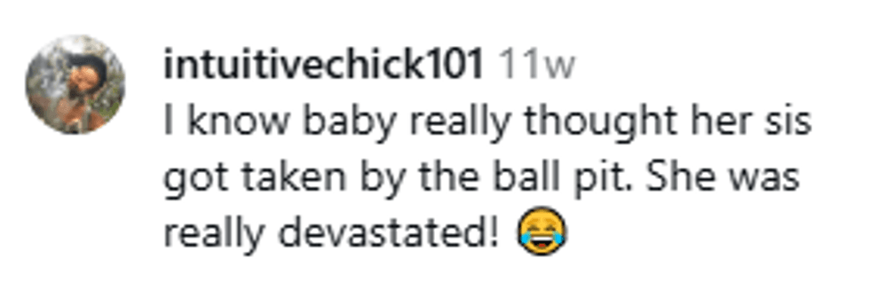 But instead of trying to get out, Olivia hilariously appeared to dissociate and just accepted her fate, sinking down into the balls.