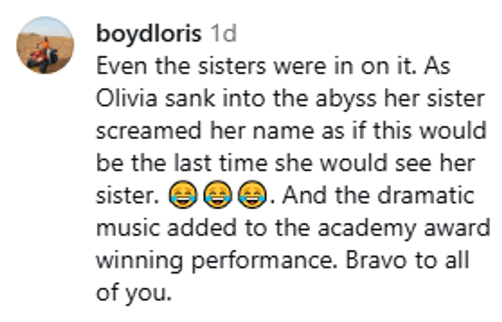 "But, they have seen 'The Lion King.' It’s actually Olivia’s favorite movie. So, she may have had a little inspiration from the Scar and Mufasa on the cliff scene."
