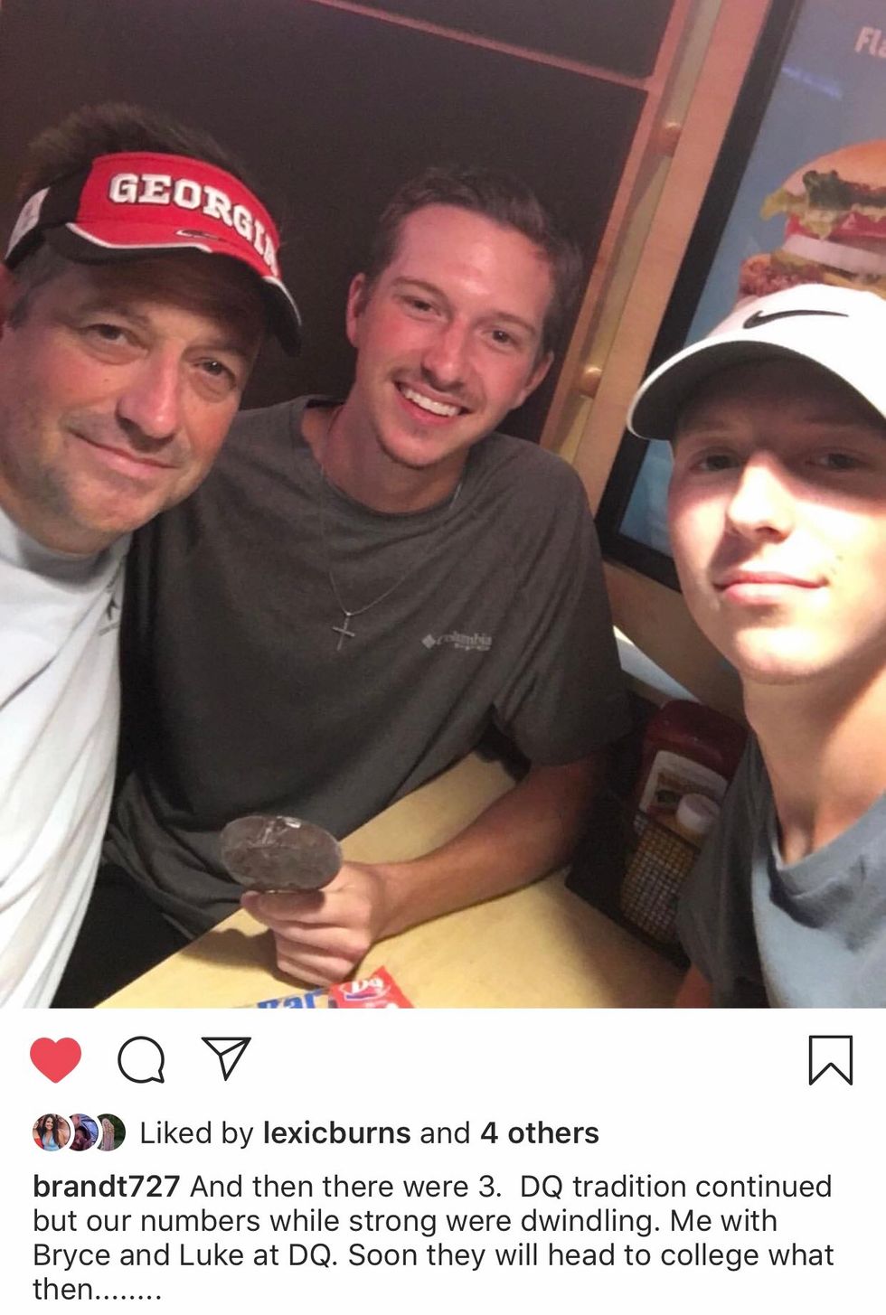"And then there were 3. DQ tradition continued but our numbers while strong were dwindling. Me with Bryce and Luke at DQ. Soon they will head off to college what then…….."