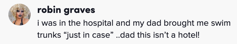 When a woman convalescing as a patient in the hospital enlisted the help of her dad for clothing options, she had no idea what was in store.