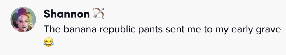 For pants, he chose a pair of Banana Republic dress pants. "Okayy," she said.