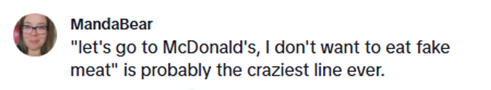 Some mocked his follow-up suggestion of getting "real meat" at McDonald's.