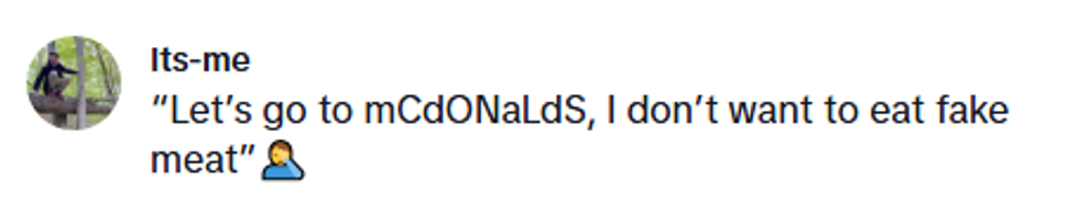 "Let's go to McDonald's! I don't want to eat fake meat!"