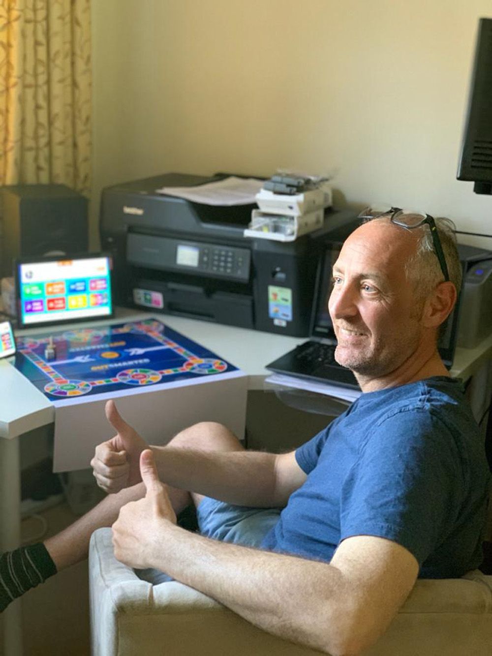 The go-getting dads first started throwing around ideas for a board game they could invent together in 2019, settling on the name Outsmarted! and the concept that it should be device-driven in the autumn.