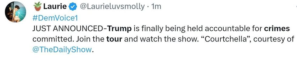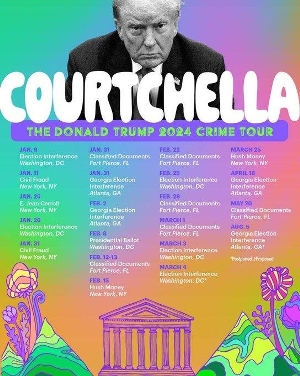 The schedule was offered as a poster for Courtchella: The Donald Trump 2024 Crime Tour.