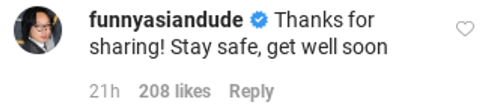The post was well-received by his Instagram followers, many indicating their disgust against those who have referred to the global pandemic as "the Chinese virus" and those who blame the spread of the virus on Asian people.