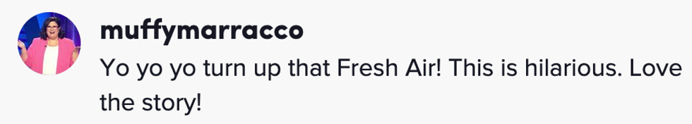 "She started laughing. 'You're listening to NPR talk radio.'"