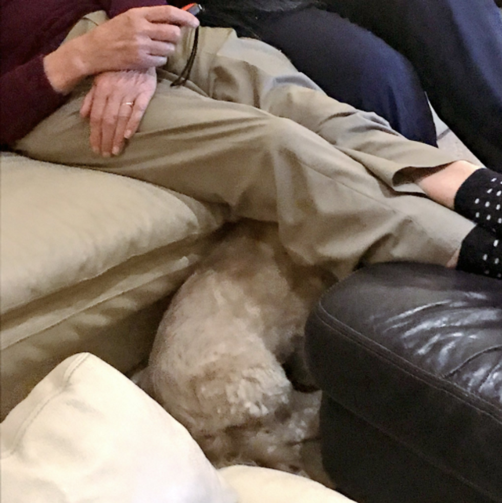 Once the family finally realized what had happened, Colin went to hide under grandpa's legs "because we're all screaming."